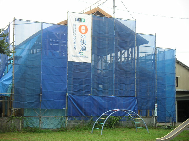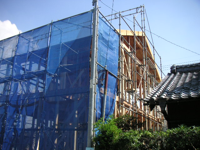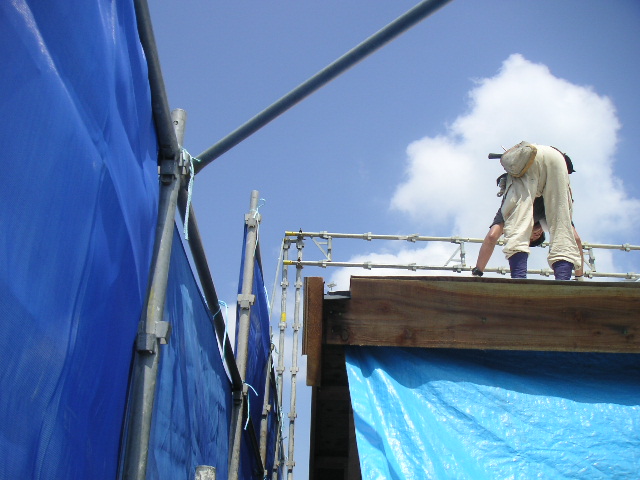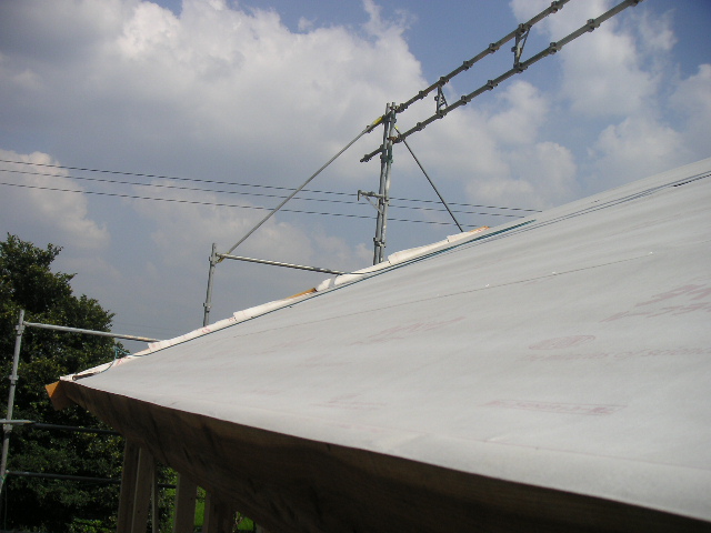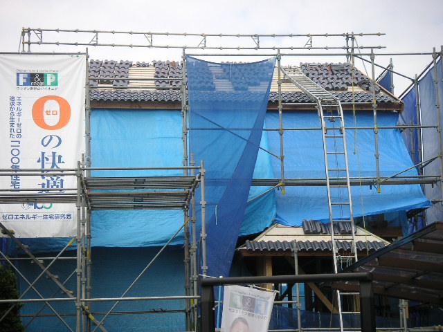 只今、縁の役物瓦取付ける為に、工事の順序として、軒天、破風板を先に大工工事しています。それが終わると、縁の役物瓦が取付け可能になり、瓦工事完了します。9/14記載