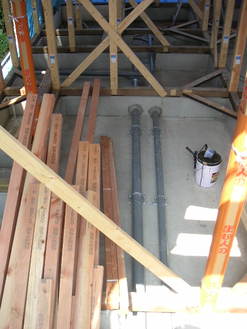 大きい配管がトイレ用、小さい方が生活排水となります。