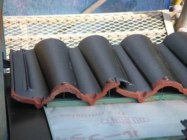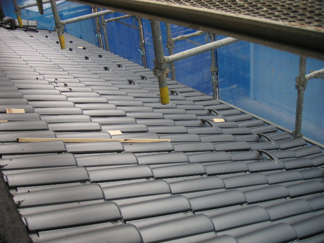 瓦の形状を半円形にした事により、工事中、載っても割れる事が減りました。以前の平板瓦の時は、100kg以上の兄ちゃんが瓦の上に載るとよく割れました。