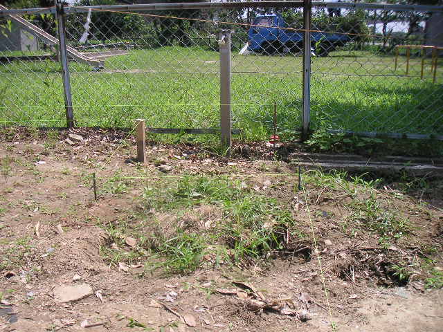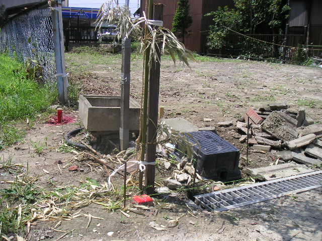 地盤改良で硬い為、土に釘を打ち込むと、釘が曲がり、打ち込めない位、地盤が固まっています。