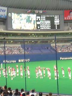 先日負けた時のチァガール、夏休みで幼稚園児から小学生達、可愛かったです。